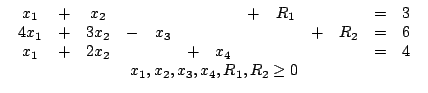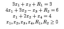 В первом и втором уравнениях нет переменных, исполняющих роль остаточных. Поэтому введём в каждое из этих уравнений по одной из искусственных переменных R1 и R2: