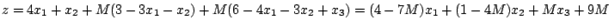 Необходимо переформулировать условие задачи, чтобы представить процесс решения в удобной табличной форме. Подставив в целевую функцию полученные из соответствующих ограничений выражения для искусственных переменных