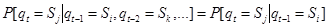 Розглянемо систему, яку можна в будь-який момент часу можна описати одним з N станів, S1 , S2 ,...SN , (мал. 1), де для простоти N = 5. Через певний проміжок часу система може змінити свій стан або залишитися в колишньому стані відповідно до ймовірностям, зазначеним для цих станів. Моменти часу, коли ми реєструємо стан системи ми позначимо як t=1,2,... , а стан в момент часу t - ми позначимо q t. Повний опис розглянутої вище системи, повинно містити поточний стан (в момент часу t) і послідовність всіх попередніх станів, через які пройшла система. В окремих випадках опис системи зводиться до вказівкою поточного та попереднього стану.