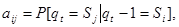 де a i j - це ймовірність переходу з стану S i в стан S j в даний момент часу. Оскільки ці ймовірності характеризують випадковий процес, вони мають звичайні властивості, т. е.