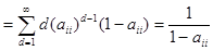 Величина pi (d) - це ймовірність того, що система буде перебувати в стані i рівно d раз поспіль. Відповідно є функція розподілу ймовірності для тривалості перебування системи в одному стані, яка є характеристикою збереження стану для марківських ланцюга. Знаючи величини pi (d) ми можемо обчислити середній час, протягом якого система збереже свій стан (використовуємо формулу математичного очікування):