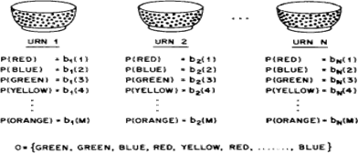 Припустимо, у нас є N скляних прозорих ваз. У кожній вазі - велике число кульок різного кольоруВважаємо, що у нас в кошику лежать кульки M різних кольорів. Фізично це можна представити наступним чином. Людина знаходиться в кімнаті з вазами. Яким-небудь випадковим чином він вибирає будь-яку вазу, простягає руку глибше, і витягує м'яч. Колір кулі записується в журнал показань - спостерігається послідовність, і людина кладе шар назад в цю вазу. Потім наша людина вибирає нову вазу, і йде до неї, і витягує звідти новий шар, і так далі. В результаті ми отримуємо послідовність кольорів - результат роботи ПММ - спостерігається послідовність.