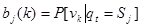 b j (k) - імовірність того, що в момент часу t, система, яка знаходиться в j-му стані (стан Sj), видасть k-тий символ (символ k) в спостережувану послідовність.