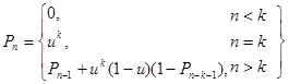 Відповідь розпізнавання фонетичного стенографа може розглядатися як правильна послідовність фонем, пропущена через канал з шумом. Позначимо у відповіді фонетичного стенографа правильну фонему як 1, а зіпсовану шумом як 0. Нехай імовірність появи 1 в двійковому наборі дорівнює u. Імовірність P знайти в двійковому наборі довжини n підряд k одиниць і більше можна обчислити за допомогою наступного рекурентного виразу: