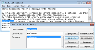 − проверка орфографии практически в любых окнах, в которых возможен ввод текста. Например, в почтовых и коммуникационных программах (в частности, в ICQ);
