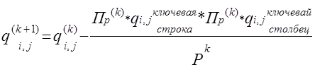 Он основан на пересчёте коэффициентов в системе уравнений и целевой функции при перемене мест свободной и базисной переменных можно формализовать и свести к преобразованию симплекс-таблицы.