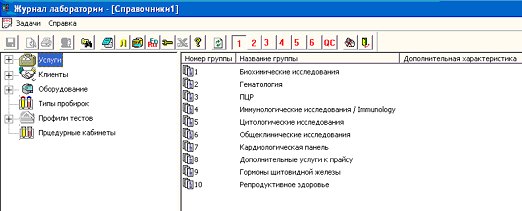 - ввод и хранение проводимых лабораторией исследований (тестов);