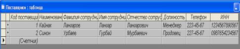 Форма для поставщика (для ввода данных в таблицу «поставщики»);