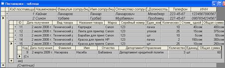 Запрос по поставщику (общая сумма товара) перекрестный запрос;