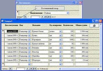 Рис. 2.14. Вывод информации о товарах по их поставщику.