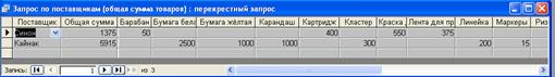 Рис. 2.16. Перекрестный запрос (поставщики и общая сумма товаров).