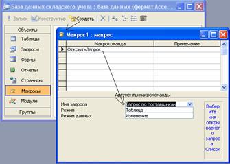 Мы воспользуемся макросами для открытия запроса. Это необходима для дальнейшей работы с базой данных. При создании кнопочной формы MS Access не имеет функцию вывод на экран запросов. Поскольку заказчик требовал от нас запросы, которые мы уже создали.