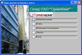 Глава II. Описание базы данных складского учета для ОАО «Ориенбанк»