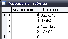 - таблиця "Разрешение" містить роздільну здатність дисплея телефону