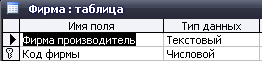 4. У вікні, що з'явилося, у стовпці "Ім'я полючи" увести майбутні імена полів. Встолбце "Тип даних" вибрати тип майбутніх полів (Мал. 4.3.5 Таблиця "Постачальник").