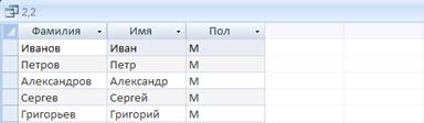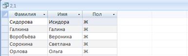 Запрос №2. Используя таблицу Студенты, создать два запроса, по которым из базы данных будут поочередно отобраны фамилии и имена женщин, а затем фамилии и имена мужчин.