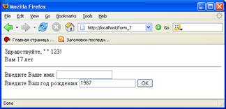<INPUT type=text size=33 name=name value=”Прохоров Виктор Сергеевич”>