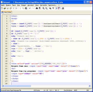 2.5. Встраивание PHP в HTML - форму