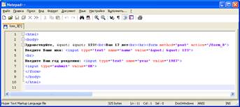 Одно из наиболее распространенных приложений любого языка создания серверных сценариев – обработка HTML - форм. Web-программирование в большей части представляет собой обработку различных данных, введенных пользователем.
