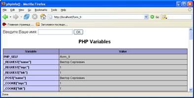 РНР облегчает задачу обработки и разбора форм, поступивших из браузера, так как в язык на самом нижнем уровне встроены все необходимые возможности. Поэтому программисту не приходится даже и задумываться над особенностями протокола HTTP и размышлять, как же происходит отправка и прием ро s т -форм или даже загрузка файлов.