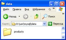 После этого следует набрать:mysql > use products ;