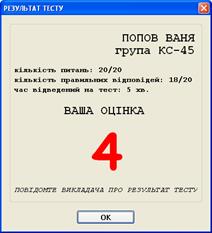 Риcунoк 13 – Вiкнo фoрми виведення результату теcту