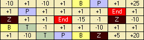 Игра совсем не так проста, как может показаться. Совсем легко разместить свой маркер так, что на него сместится ячейка с номиналом |Z| - обнуление счета, или |End| - окончание игры.