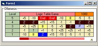 Здесь описывается процесс программирования «текстовой версии» логической табличной игры «Oflameron». Номиналы ячеек представлены на экране в символьном виде, а ячейки представляют собой элементы Label. В следующей части документа будет представлено полное описание процесса разработки графической версии игры и версии игры для карманных компьтеров (PDA).