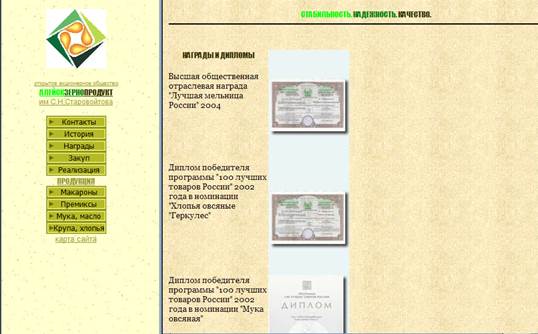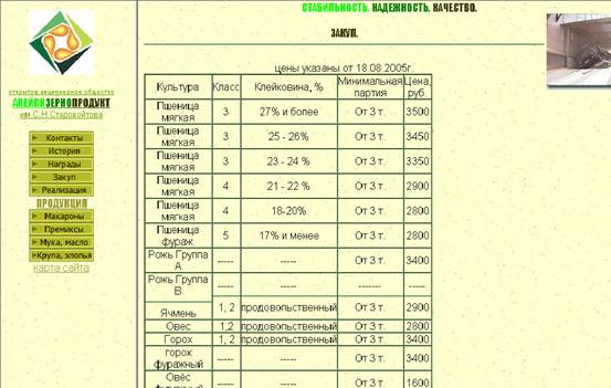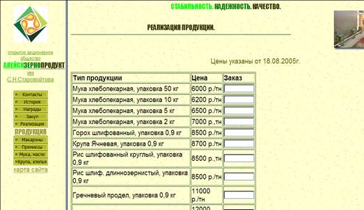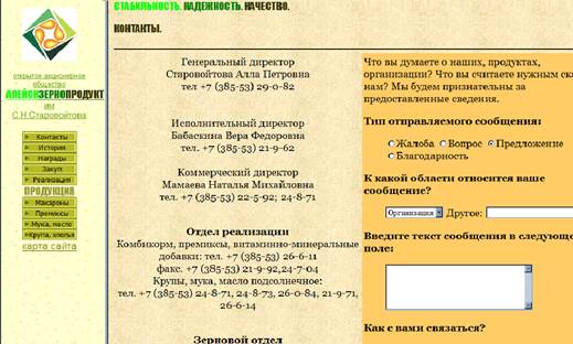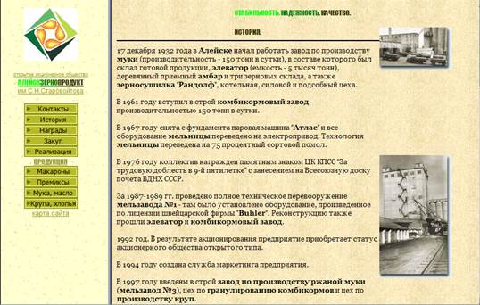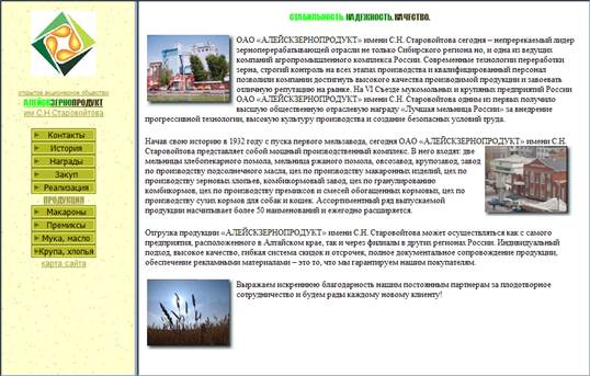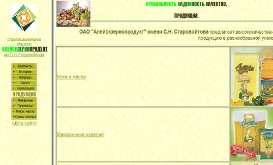 Дипломная работа: Разработка web-сайта ОАО "Алейскзернопродукт" имени С.Н. Старовойтова
