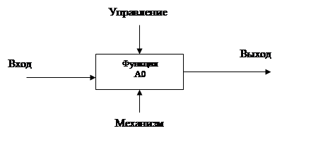 Результатом применения метода SADT является модель, которая состоит из диаграмм, фрагментов текстов и глоссария, имеющих ссылки друг на друга. Диаграммы – основные компоненты модели, все функции организации и интерфейсы на них представлены как блоки и дуги соответственно. Место соединения дуги с блоком определяет тип интерфейса. Управляющая информация входит в блок сверху, в то время как входная информация , которая подвергается обработке, показана с левой стороны блока, а результат (выход) показаны с правой стороны. Механизм (человек или автоматизированная система), который осуществляет операцию, представляется дугой, входящей в блок снизу (рис.2.1.).