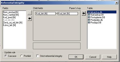 Реляционные базы данных представляют связанную между собой совокупность таблиц баз данных. Связь между таблицами может находить свое отражение в структуре данных, а может только подразумеваться, то есть присутствовать на неформализованном уровне. В каждой таблице базы данных может существовать первичный ключ. Под первичным ключом понимают поле или набор полей, однозначно идентифицирующий запись. Значение первичного ключа в таблице базы данных должно быть уникальным, то есть в таблице не должно существовать двух или более записей с одинаковым значением первичного ключа. Первичный ключ должен быть минимально достаточным: в нем не должно быть полей, удаление которых из первичного ключа не отразится на его уникальности.