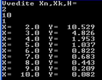 Xn=2; Xk=10; h=1.