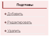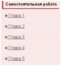 Каждая ссылка включает в себя подссылки (например, для ссылки "раздел 1" - подсылки: "§1", "§2", "§3", "§4"), ссылающиеся на подразделы одной или нескольких различных HTML-страниц. При загрузке любой из подссылок, рабочая область будет загружаться одним окном с двумя панелями навигации.