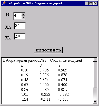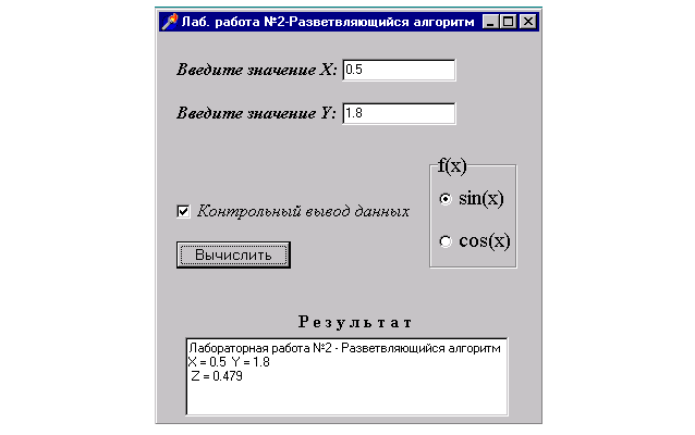 Численные значения данных x, y и z занести с клавиатуры в соответствующие поля панели интерфейса. Один из возможных вариантов панели интерфейса создаваемого приложения показан на рис. 1.2.