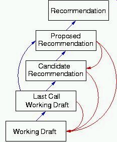 Чтобы Предложенная рекомендация превратилась в Рекомендацию, Директор должен быть уверен, что она пользуется ощутимой поддержки со стороны Консультативного комитета, Целевой группы, рабочих групп W3C и общественности. Решение о предании документу статуса Рекомендации является решением W3C.