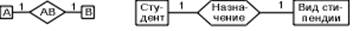 В рассмотренных ранее примерах стержни – это "Студент", "Квартира", "Мужчины", "Врач", "Брак" и другие, названия которых помещены в прямоугольники. Ассоциативная сущность (ассоциация ) – это связь вида "многие-ко-многим" ("-ко-многим" и т.д.) между двумя или более сущностями или экземплярами сущности . Ассоциации рассматриваются как полноправные сущности: