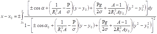 Уравнение (10) представляет собой уравнение профильной кривой вогнутого и выпуклого столбов расплава в общем виде. Интеграл в уравнении (10) не выражается в элементарных функциях и может быть вычислен только численно. Знак “—” перед интегралом соответствует левой (по отношению к оси) ветви, а “+”—правой ветви меридиональной кривой. Обе ветви равноправны.