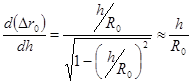 Изменение угла a при небольших отклонениях от величины h0 определяется следующим выражением