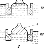 И, наконец, собственно выращивание кристалла включает в себя ряд переходных состояний фронта кристаллизации—от начального положения V! до положения VIII.