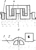 а—контактное формообразование; б—электромагнитное формообразовяние