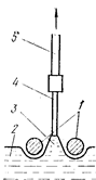 1 — кристалл; 5 — формообразователь; 3—столб расплава;