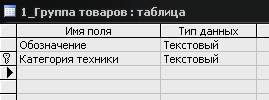 Рисунок 2.1 1-таблица “1_Группа товаров", открытая в режиме “конструктор".