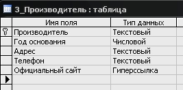 Рисунок 2.1 3-таблица “ 3_Производитель", открытая в режиме “конструктор".