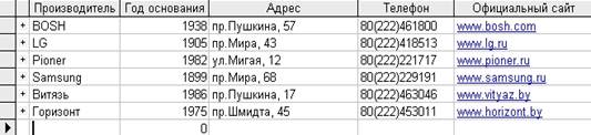 Таблица "3_Производитель" данной базы данных представлена на рисунке 2.1.7.