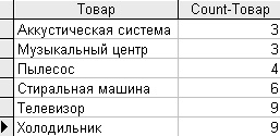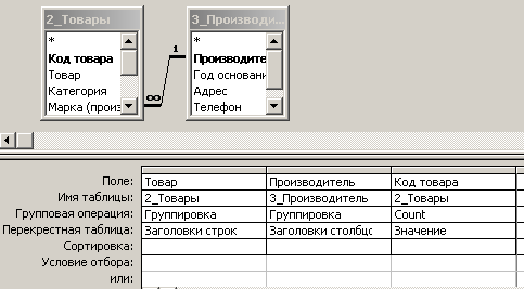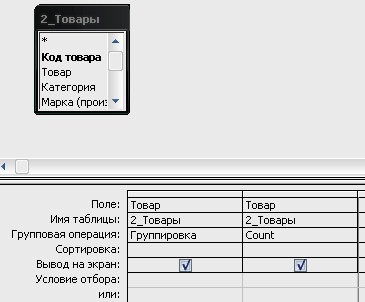 В этом запросе подсчитать количество товаров. Для этого необходимо создать соответствующий запрос. В режиме “конструктор” запрос имеет вид, представленный на рисунке 2.2.3.1.