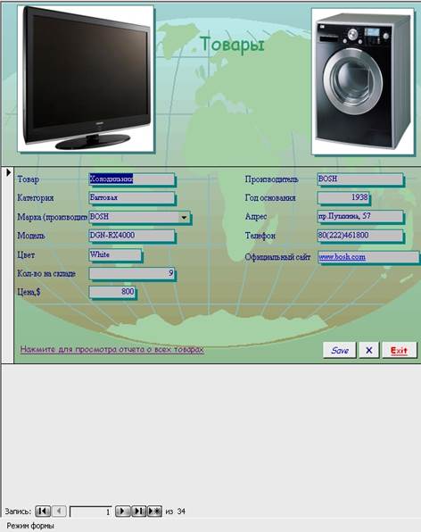 Были созданы формы с запрограммированными элементами управления с целью облегчения доступа к данным, быстрого поиска и т.д.