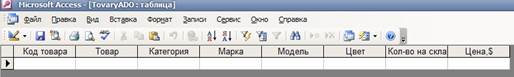 В результате выполнения данного программного кода таблица "TovaryADO" будет удалена.
