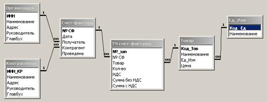 Пассивные объекты: счет-фактура, р/с банка №1, р/с банка №2, р/с организации, р/с сторонней организации, журнал учета счет-фактур.