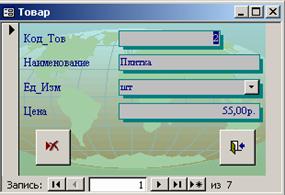 Например, если пользователь решил ввести новый товар, то необходимо открыть форму «Товар», нажав кнопку «Товары», и ввести необходимые данные. Форма «Товар» представлена на рисунке Б.4.