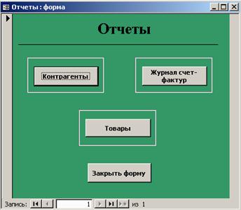 При нажатии кнопки «Отчеты» открывается форма «Отчеты», которая представлена на рисунке Б.6 и служит для просмотра (печати) отчетной информации.